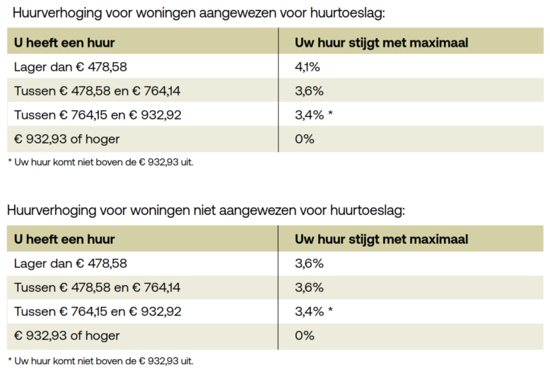 <p>Elk jaar stelt de Rijksoverheid vast hoeveel de huren maximaal mogen worden verhoogd. Op <a client-url="https://www.rijksoverheid.nl/onderwerpen/woning-huren/vraag-en-antwoord/wat-is-de-maximale-huurverhoging-in-2026" data-last-type="url" href="https://www.rijksoverheid.nl/onderwerpen/woning-huren/vraag-en-antwoord/wat-is-de-maximale-huurverhoging-in-2026" ng-link="" target="_blank" tokenbased="false">de website van de Rijksoverheid</a> lees je hier meer over.</p>