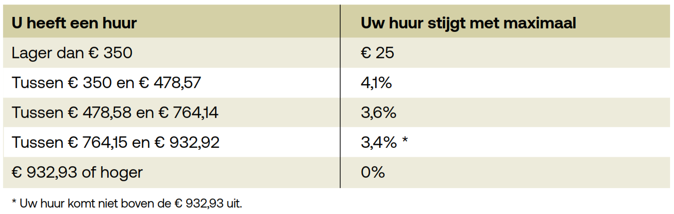 <li>Maximaal 4,1% als de kale (netto) huur €350 of meer per maand is. Dit is gelijk aan de gemiddelde loonontwikkeling.</li>